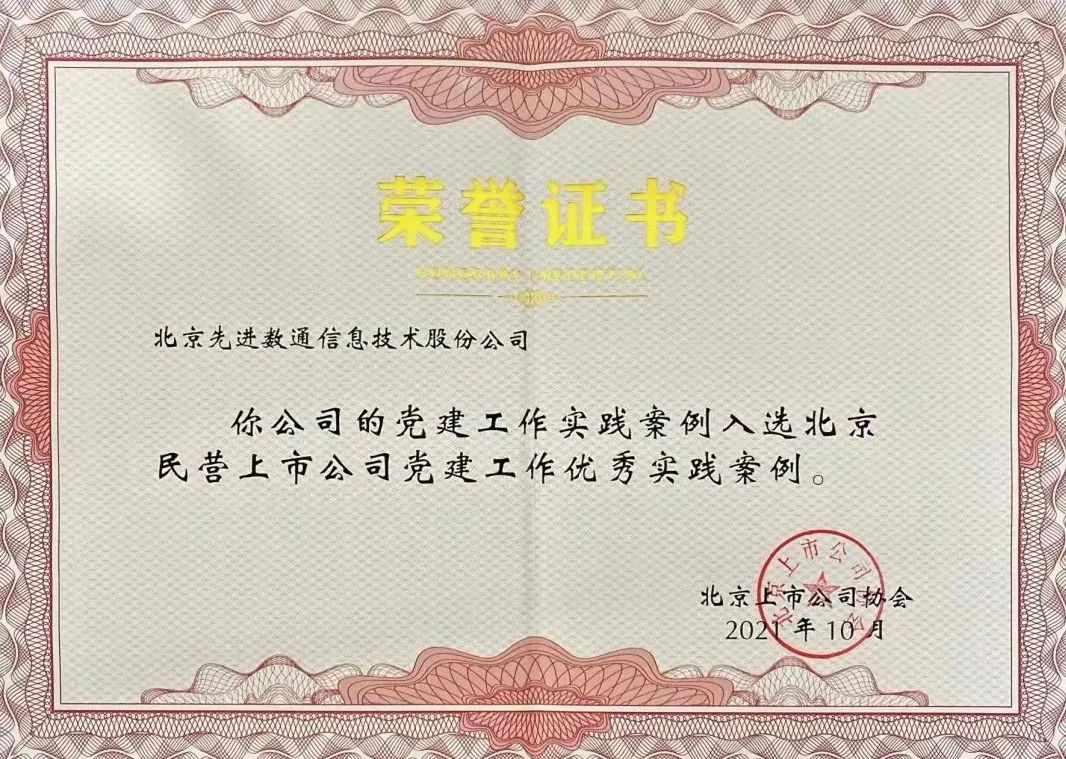近期,北京上市公司协会授予北京尊龙凯时人生就是搏信息技术股份公司荣誉证书,尊龙凯时人生就是搏党建工作实践入选北京民营上市公司党建工作优秀实践案例,相关党建活动已收录在《北京民营上市公司党建工作优秀实践案例汇编》。